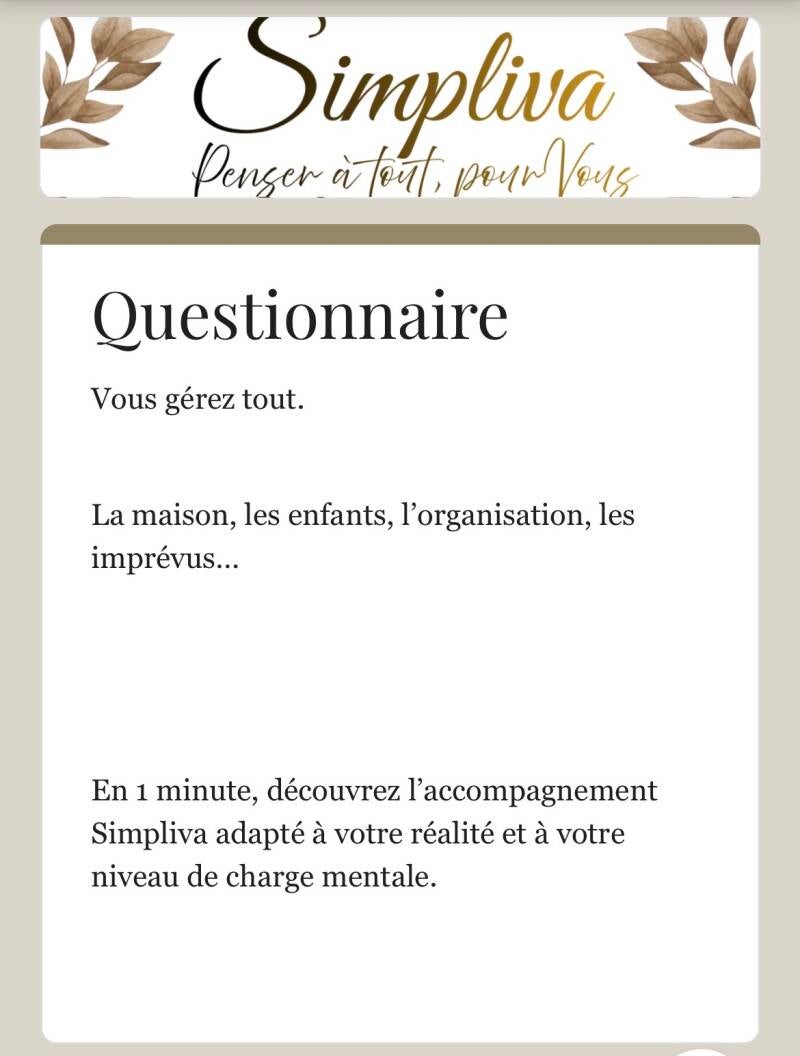 Bienvenue sur le questionnaire personnalisé Simpliva.